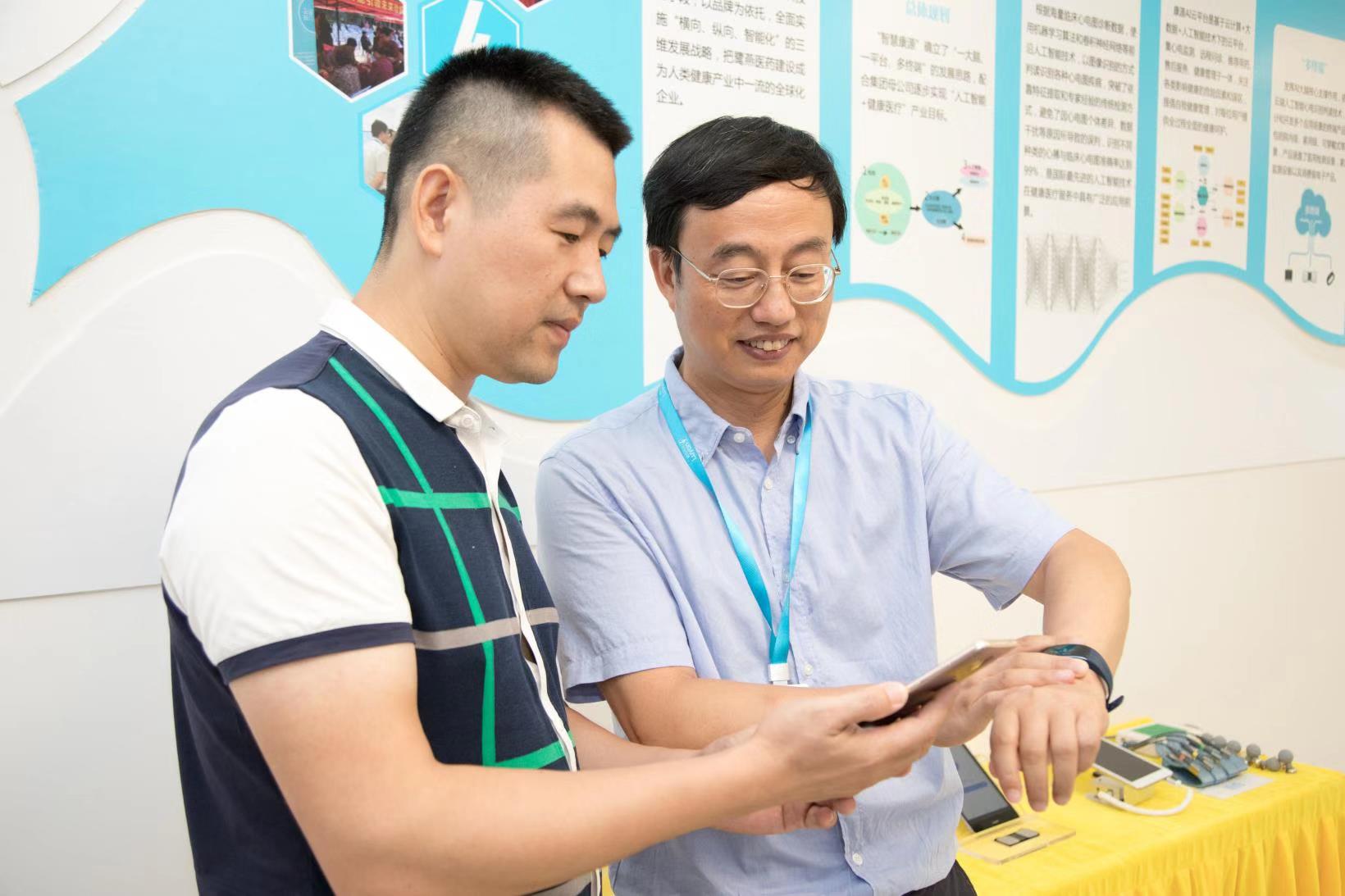 不過,在今年的第十六屆“6·18”中國·海峽項目成果交易會上,鷺燕醫(yī)藥旗下福建省康源圖像智能研究院(以下簡稱:康源研究院)讓人們足不出戶查心電圖成為了現(xiàn)實。經(jīng)過近兩年的沉淀,康源研究院成功研發(fā)出了“人工智能心電圖識別判讀系統(tǒng)”,并適時推出了一款名為“AI心手環(huán)”的應(yīng)用產(chǎn)品。只要戴上這個手環(huán),將手指夾在手環(huán)的觸點上,打開手機(jī)APP,就會實時顯示心電圖,血壓、心率一目了然,數(shù)據(jù)傳輸?shù)皆贫送瓿膳凶x后,還會得出健康建議反饋給用戶,儼然就是一個便攜式家庭智能醫(yī)生。