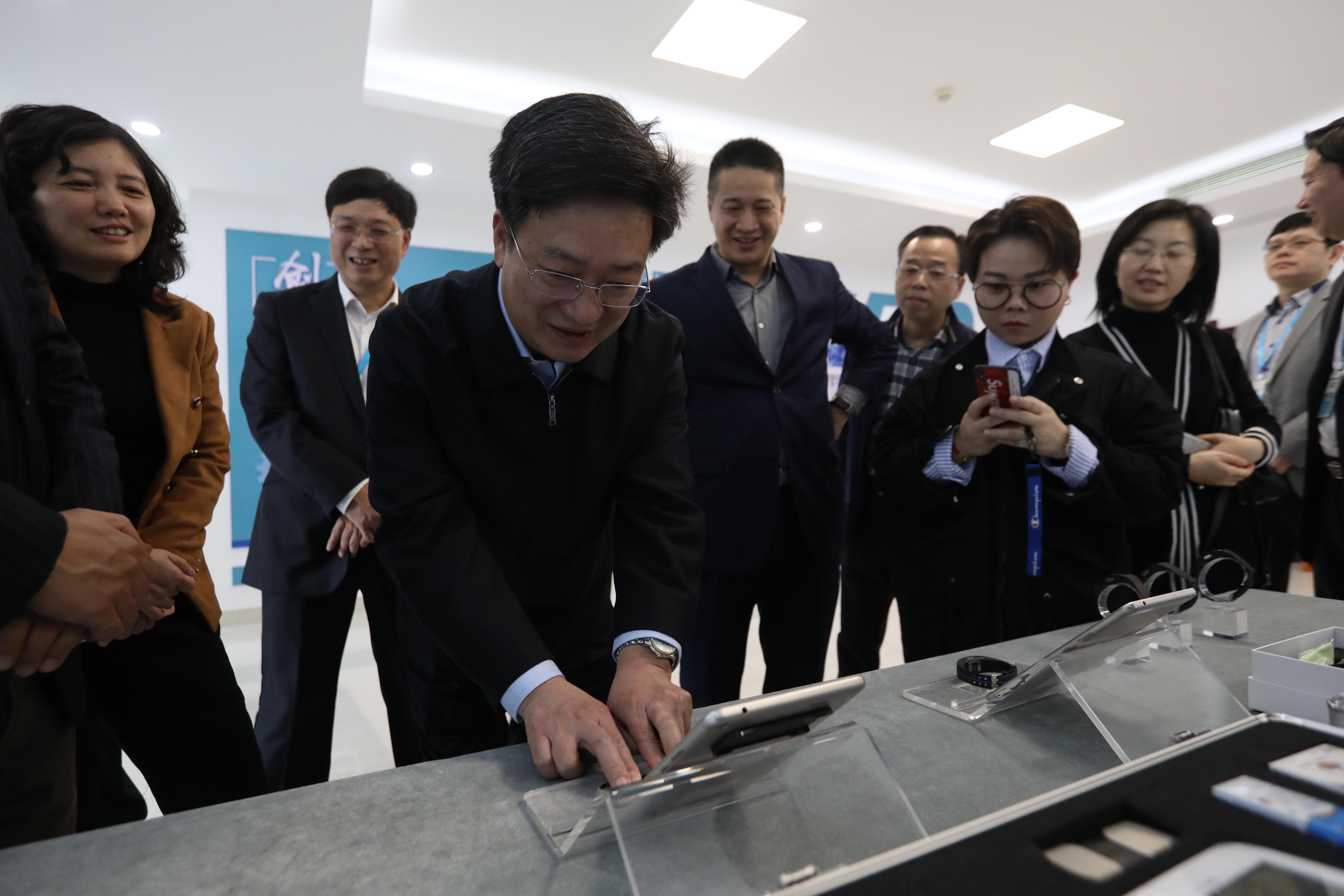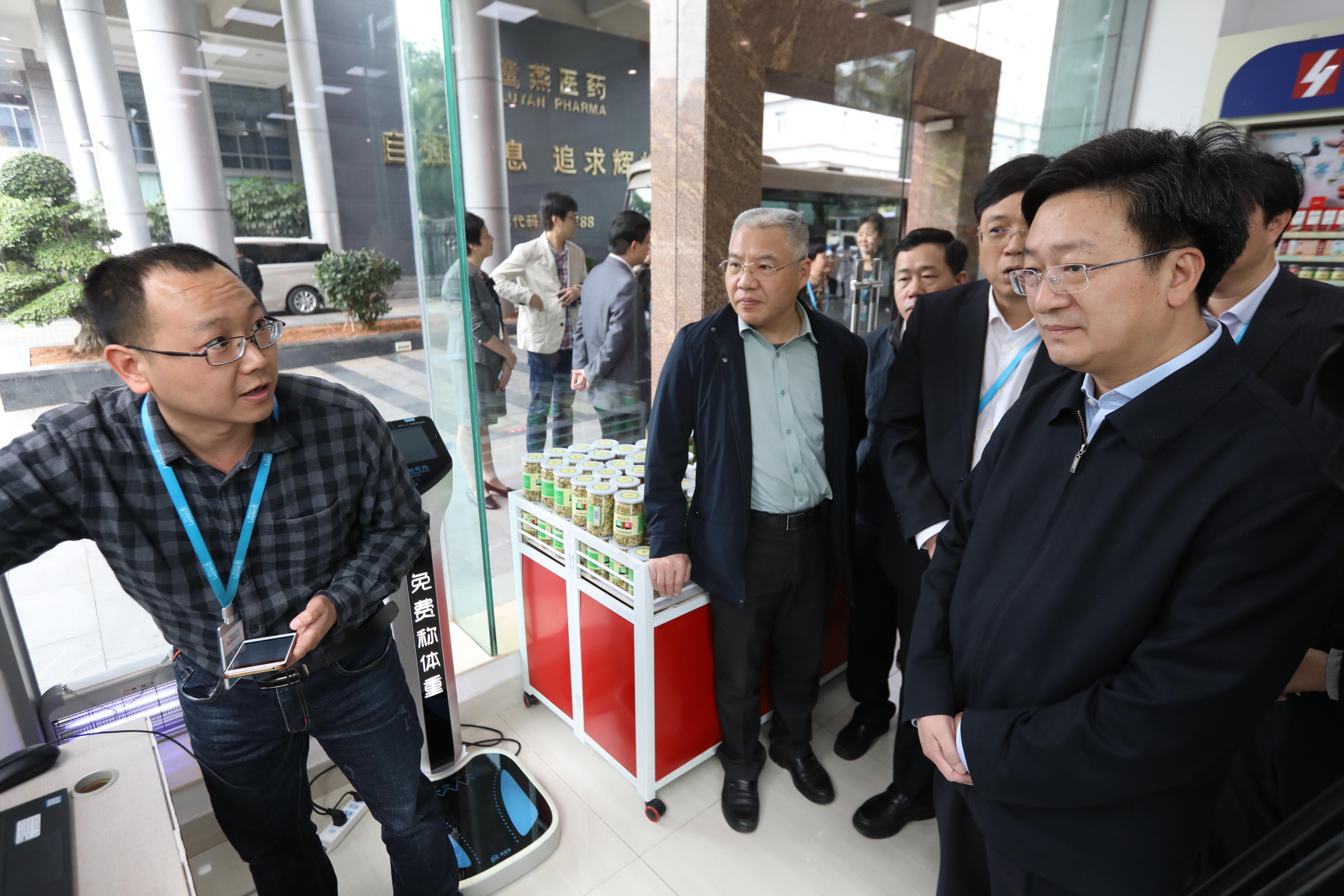隨后,施副局長(zhǎng)一行參觀了鷺燕醫(yī)藥人工智能產(chǎn)品體驗(yàn)館,鷺燕醫(yī)藥首席科學(xué)家劉知青教授重點(diǎn)介紹了鷺燕醫(yī)藥人工智能技術(shù)在醫(yī)療領(lǐng)域的創(chuàng)新應(yīng)用,施副局長(zhǎng)親自體驗(yàn)了鷺燕醫(yī)藥旗下智慧康源科技公司推出的智能心電檢測(cè)計(jì)。