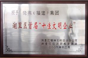 據(jù)悉,在湖里區(qū)文明辦開展的文明企業(yè)創(chuàng)建活動中,鷺燕(福建)集團有限公司榮膺湖里區(qū)首屆“十佳文明企業(yè)”。